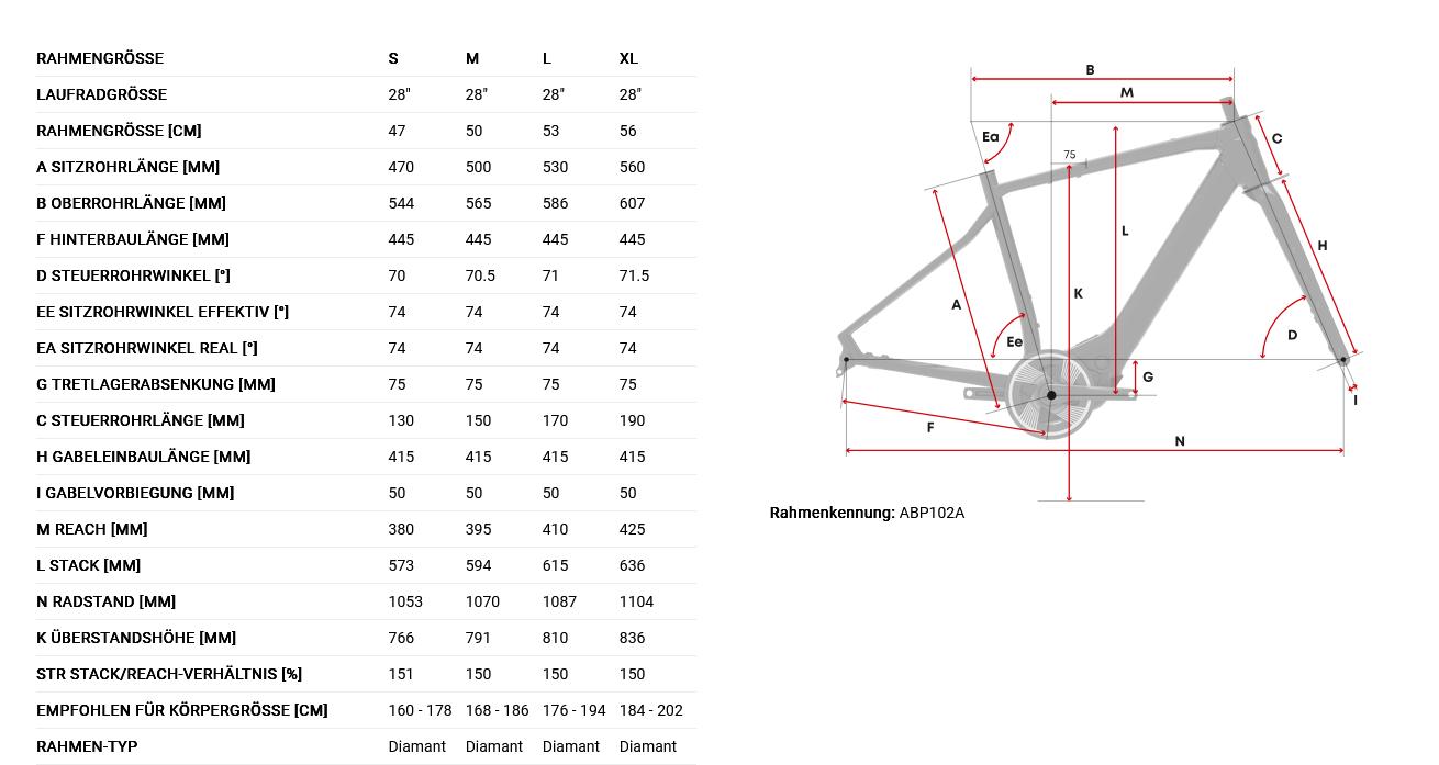 · Rahmengrößen S, M, L, XL